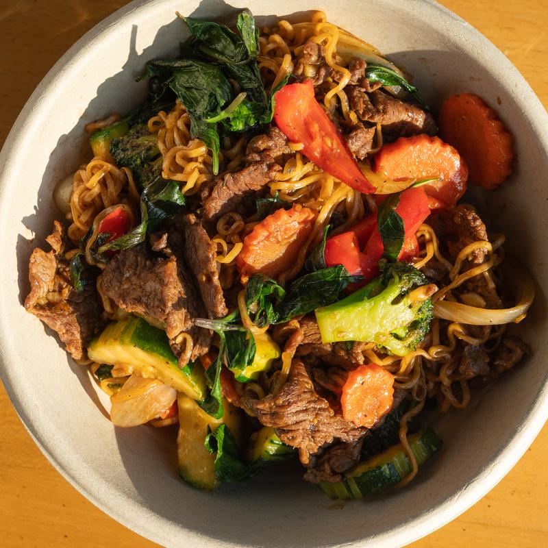 Thai wheat noodles, seasonal veggies, & basil