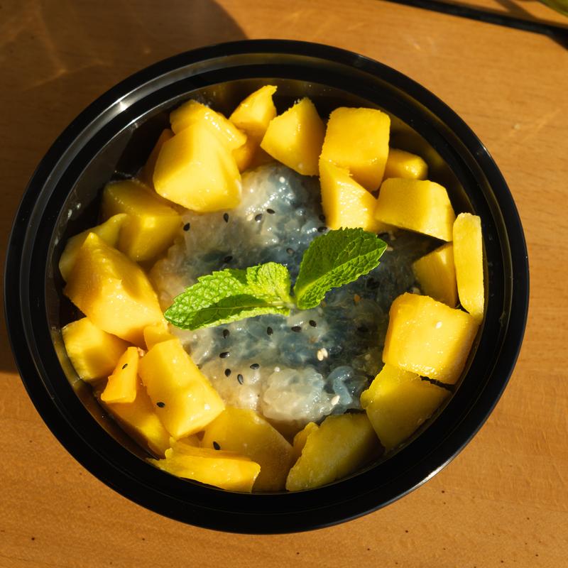 Coconut sweet rice served with fresh mangos